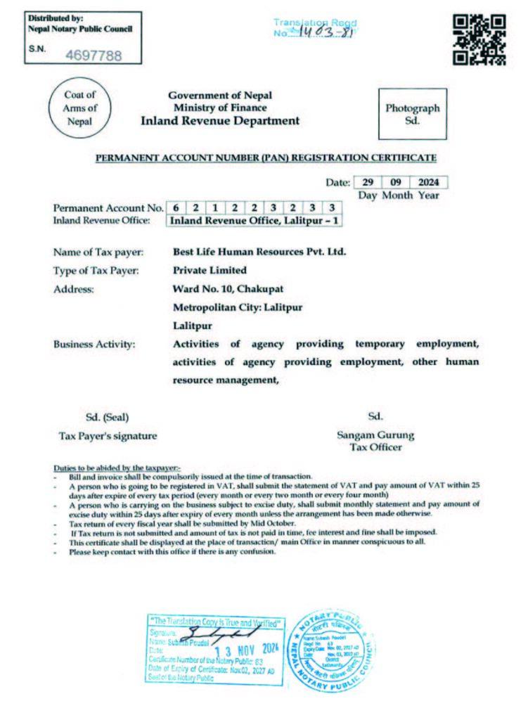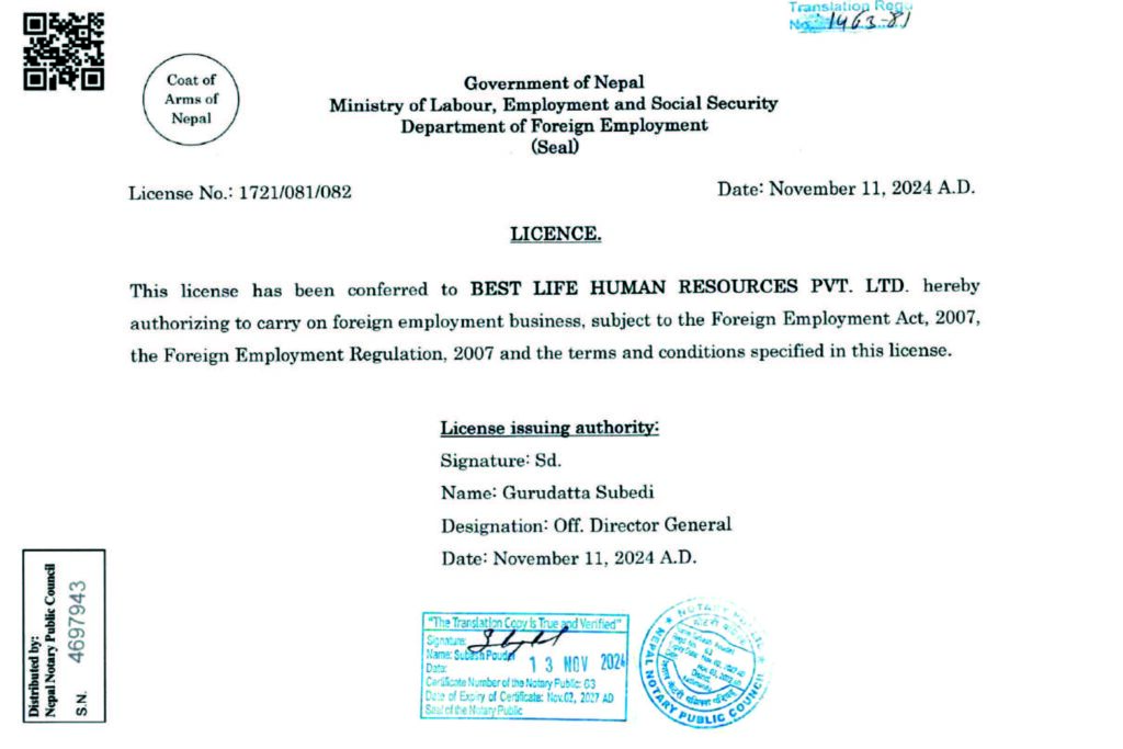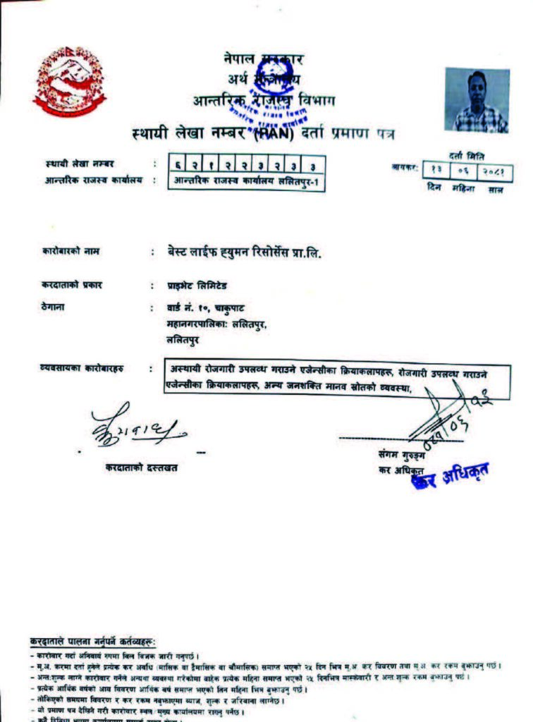 Govt. License No: 1721/081/082